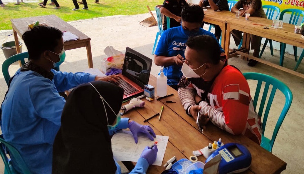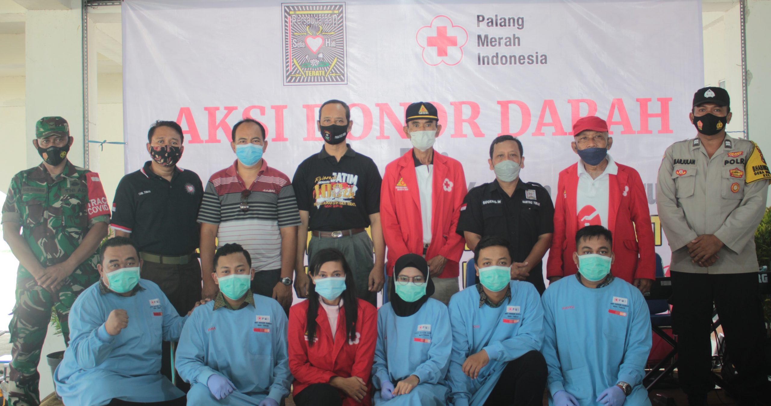 DEMI KEAMANUSIAAN : Proses donor darah dilakukan warga SH Terate Ranting Tuban.